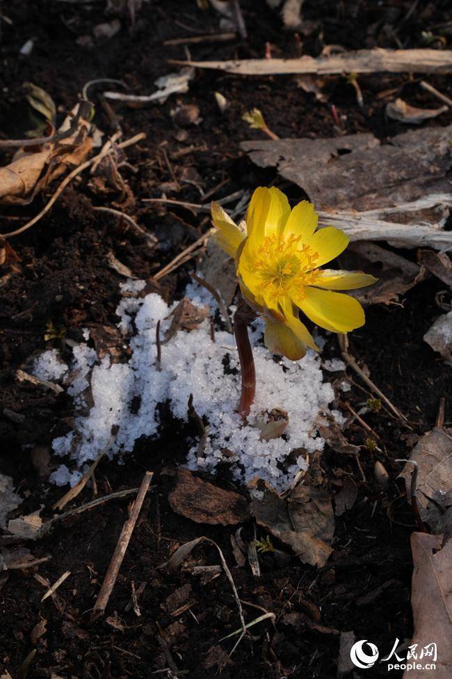随着气温升高,冰凌花破雪而出,迎春绽放。人民网记者 李洋摄